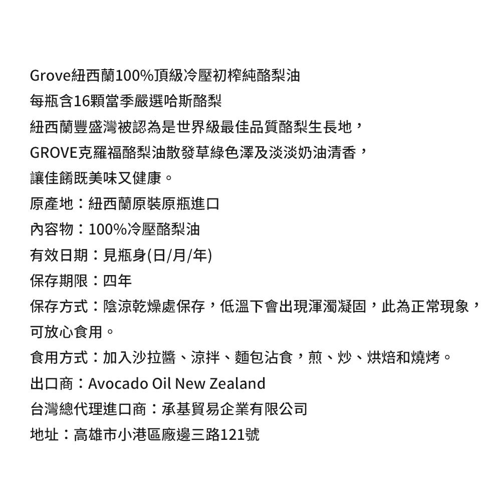 ⚪ 使用100%紐西蘭原產哈斯酪梨冷壓萃取